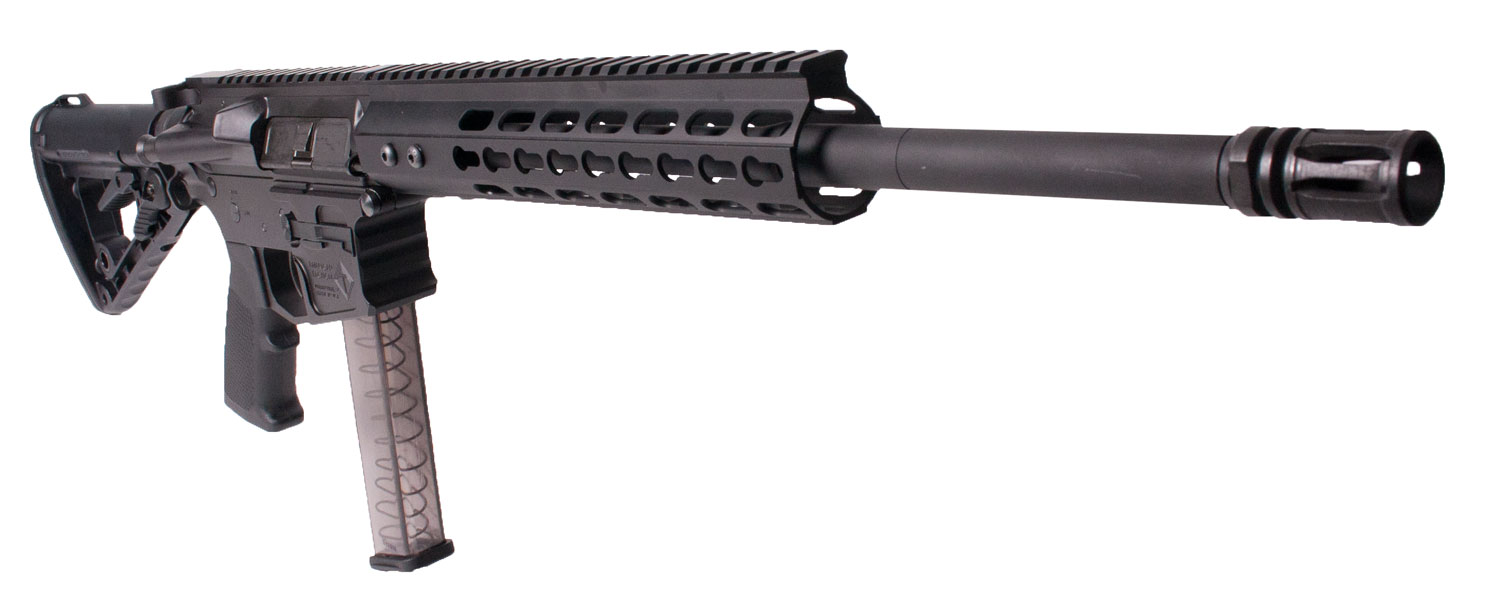 ATI's 9mm Mil-Sport Carbine fulfills all of your PCC (Pistol Caliber Carbine) dreams at an affordable price. It features a forged aluminum upper receiver billet aluminum lower receiver and a 16 nitrided barrel with 1/2 x 36 muzzle threads. The heavy 9mm buffer allows you to shoot 115GR through 147GR 9mm ammo until you run out. This Mil-Sport Carbine has a black finish and is optic-ready with a 10 free-floating Keymod handguard. It has a 6-position Rogers Superstoc and includes a 31-round magazine. It is compatible with most 9mm Glock magazines.