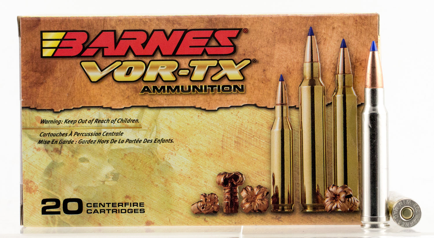 Barnes VOR-TX is precision ammunition loaded with TSX Tipped TSX or TSX FN bullets to offer double-diameter expansion maximum weight retention and excellent accuracy. The TSX bullets provide maximum tissue and bone destruction pass-through penetration and devastating energy transfer. Multiple grooves in the bullet's shank reduce pressure and improve accuracy. Bullets open instantly on contact - no other bullet expands as quickly. Nose peels back into four sharp-edged copper petals destroying tissue bone and vital organs for a quick humane kill. Whether you're after whitetail deer elk antelope or boar put 'em in the VOR-TX and they're going down.