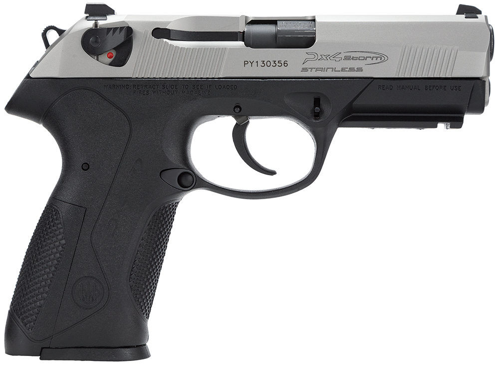 The Px4 Storm Inox brings a fresh look and unique style to the Px4 family. The Inox continues to maintain the proven features of the Px4 line of pistols. Starting from a solid bar of stainless steel the slide is bead blasted to a smooth satin finish ensuring a non-reflective surface that is highly resistant to the elements. Mated to the highly refined techno-polymer reinforced fiberglass frame the Px4 Inox is optimized for use in the most challenging environments. Together they create a two-tone finish that is not only practical and functional but distinctly attractive. The three interchangeable backstraps make fitting most shooters with different sized hands quick and easy.The magazine release is easily changed to accommodate both right- or left-handed shooters and the unparalleled reliability of the in-line feeding system.The Px4 Inox epitomizes functional elegance for the most demanding shooter.This 40 S&W model comes with a 10-round magazine.