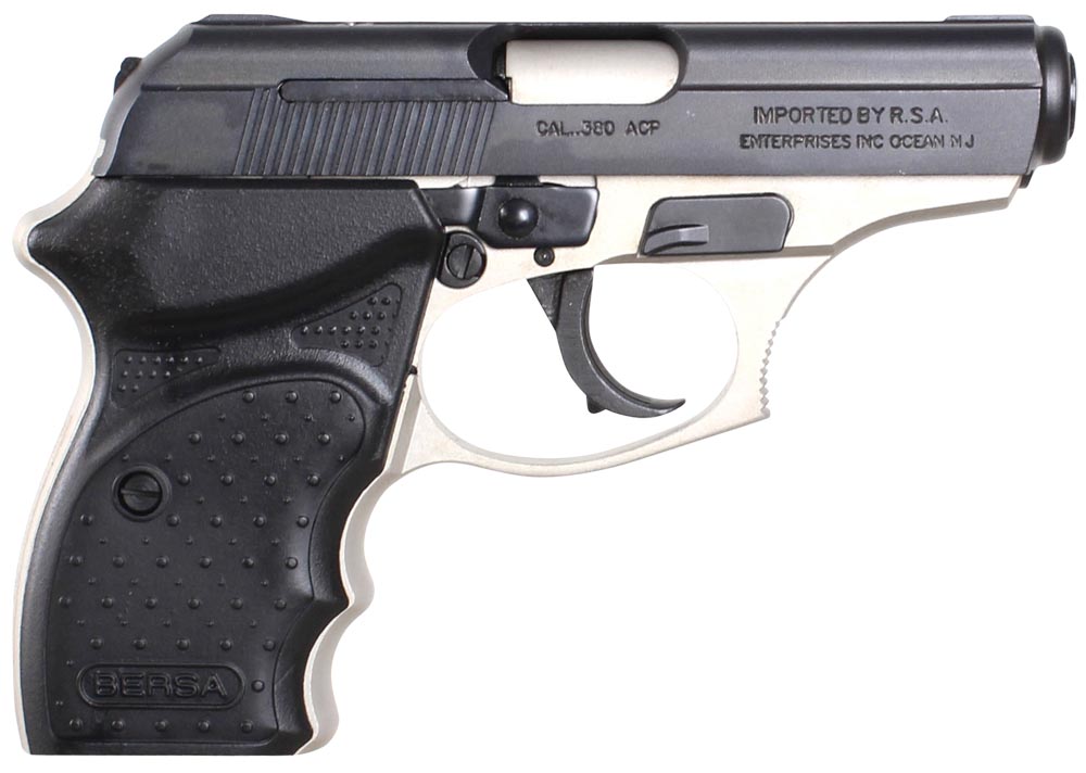 The Thunder .380 is a reliable auto pistol with great ergonomics controllable power a perfect trigger pull and an exceptional price. The Bersa handles recoil well due to the shape and texture of the grip panels and grooved front and rear surfaces of the frame. The pistol also has a hooked and grooved trigger guard for those who prefer to place a finger in that position. The Concealed Carry pistol features: extra low profile sights combat style trigger guard slim slide release micro-polished bore with sharp deep rifling flat bottom magazine and integral locking system.This model features a nickel frame with black slide.