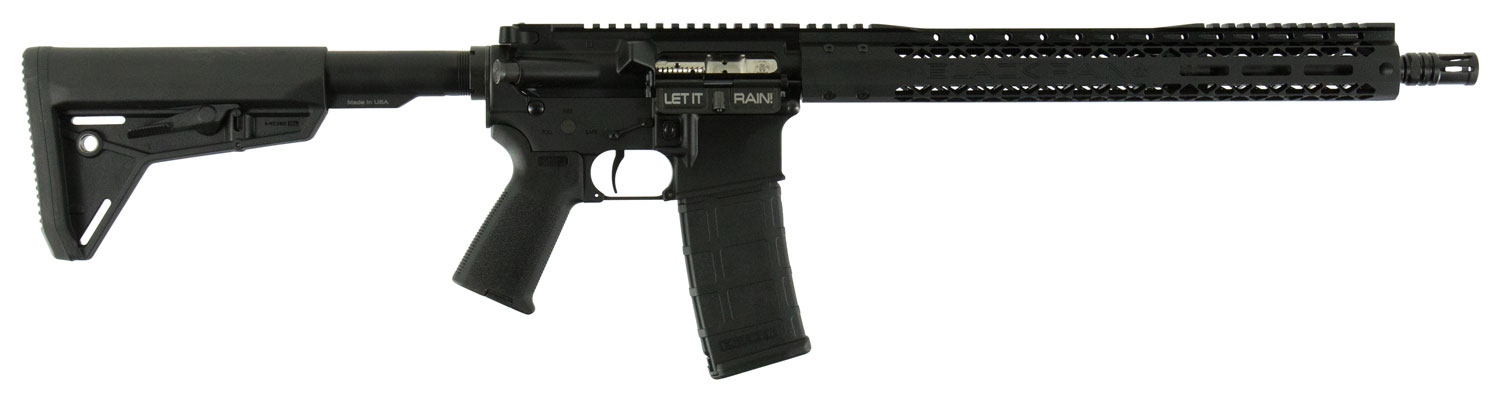 The Black Rain Ordnance Spec series is a line of AR15 rifles and pistols built to meet bid requirements for law enforcement and military personnel and as an affordable option for civilian use.The Spec15 SOCOM Plus model is an enhanced version of Black Rain's SPEC15 Carbine. It uses a direct impingement gas system has a low profile adjustable gas block and a Nickel Boron-coated BCG. It has a forged aluminum upper and lower receiver 4150 chormoly barrel and a 15 handguard. This 5.56 model has SOCOM profile 16 barrel with A2 flash hider Magpul MOE pistol grip MOE-SL buttstock and a black hardcoat anodized metal finish.