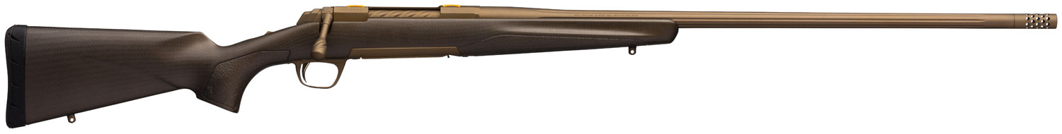Browning's X-Bolt builds on the proven successes of past Browning rifles and adds numerous improvements. Its adjustable three-lever Feather Trigger system provides a clean crisp pull with no take-up. The barrel is free-floated by bedding the front and rear of the action for stability and to help maintain barrel to stock spacing for consistent accuracy. A recessed muzzle crown helps protect the rifling from damage. The bolt unlock button works in conjunction with the top-tang safety to provide an added measure of safety while the 60 degree bolt lift is fast cycling and allows you to work the bolt quickly.The Pro Long Range model is a semi-custom rifle. It features a true carbon fiber stock filled with noise-dampening foam making it extremely lightweight and rigid. The cerakote finish on the action and barrel is also on the exterior of the stock for added protection. The heavier profile barrel also features a proprietary lapping process to provide consistent accuracy and easier bore cleaning - avoiding the need for a time-consuming break-in process. Other features include a spiral fluted bolt enlarged bolt handle and a threaded muzzle with a muzzle brake or thread protector cap.