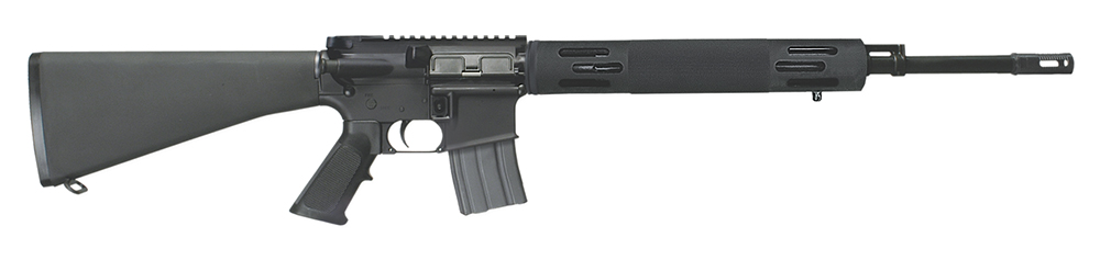 Bushmaster's Hunter Carbine rifle offers the big game hunter AR speed and accuracy. The powerful 450 Bushmaster cartridge developed in affiliation with Hornady is tamed by the AR-type gas operating system so recoil is reduced to a heavy thump and second shot control is retained. It has a free-floating vented aluminum forend. The upper and lower receivers are machined from a Mil-Spec aluminum forging. Standard AR-type 30-round magazines are fitted with a blue single stack follower to yield a magazine capacity of five rounds. The 450 Bushmaster ships with one 5-round magazine and a black web sling.This model has a 20 barrel.