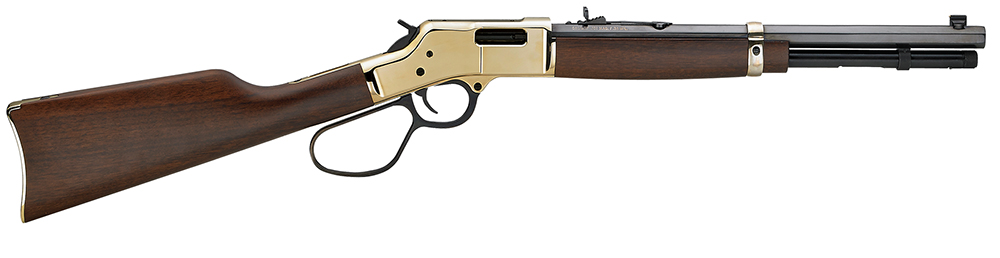 If the thought of carrying a rifle up a mountain or through thick brush is weighing you down take a load off. The Henry Big Boy Carbine is a modern carry-over of the 'Trapper' classics of the past. It combines all the features of Henry's legendary Big Boy rifle with the quick handling of a shorter lighter carbine barrel length which decreases barrel weight by almost a pound. It's the ideal brush gun for tight spaces but don't let its compact size fool you. The shorter barrel gives up nothing in accuracy to the regular Big Boy. And like the classic Henry Big Boy the attention to detail in the design with great western styling including the large loop lever makes holding this rifle as thrilling as it is to shoot. The 16.5 octagonal barrel is outfitted with a classic fully adjustable semi-buckhorn rear sight with a reversible white diamond insert and a brass beaded front-sight. The tubular magazine tops off at 7 rounds. Both the straight-grip stock and forearm are crafted of select American walnut accented with a brass barrel band and Henry's recognizable brass receiver. All have that crisp smooth action that sets an authentic American-made Henry apart from other lever action rifles on the range and in the woods today. The .357 Magnum can also shoot .38 Special rounds. Whether you're looking for the perfect gun to saddle up with or to hog hunt across the Florida backwoods the Henry Big Boy Carbine is the big shot in a small package you've been waiting for. This rifle is chambered for .357 Magnum/38 Special.