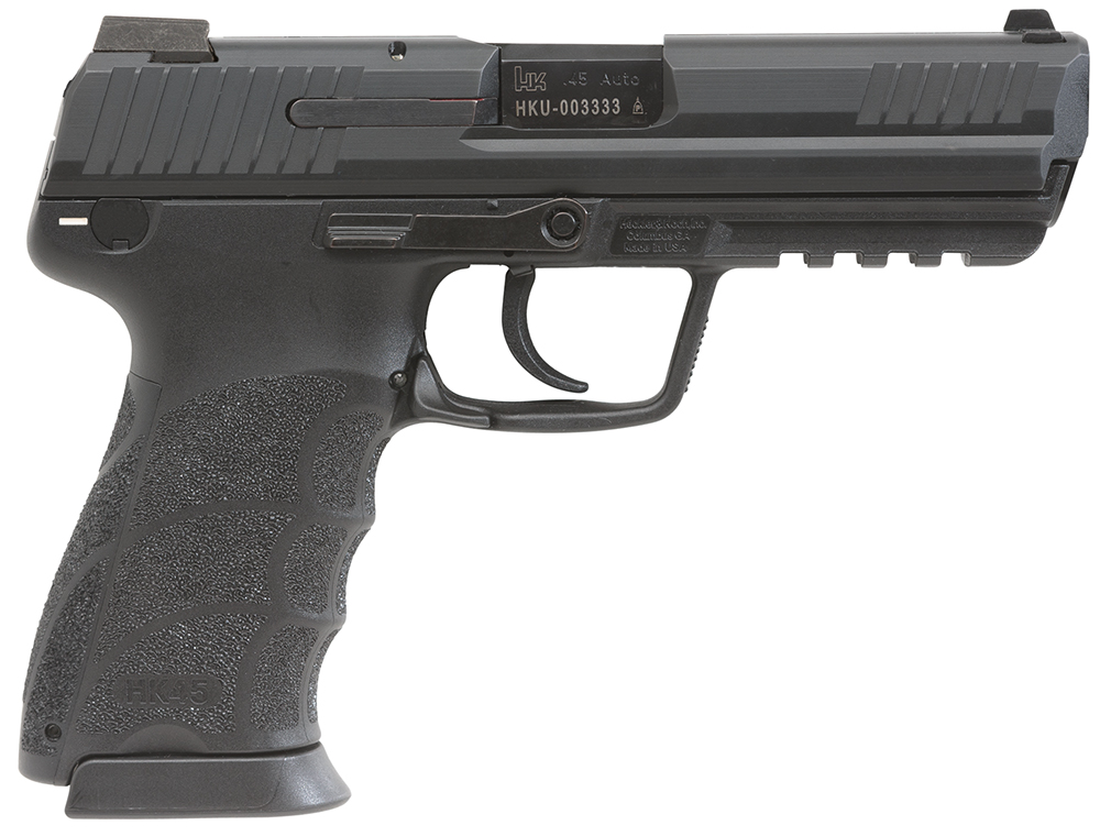 The Heckler & Koch Compact 45 much to be desired. Contoured and reduced slide with forward slide (grasping) grooves and anti-glare longitudinal ribs make it easy to chamber a round. Ambidextrous slide and magazine release make it a weapon choice for both left and right hand shooters. Its integral military standard 1913 picatinny rail molded into the polymer frame just cover for mounting lights laser aimers. and other accessories. Ergonomic grip profiles with user replaceable grip panels to adjust the feel and grip circumference of the weapon suit individual operator hand size and shooting preference. No bullet velocity will be lost with the hammer forged polygonal bore.