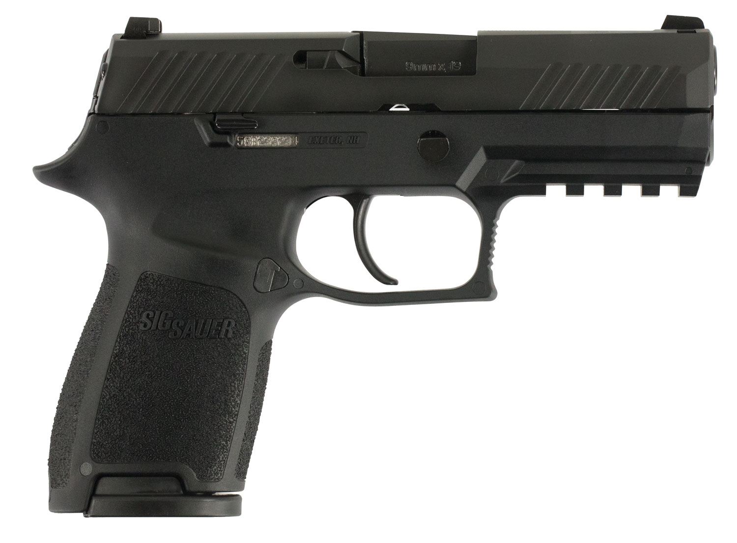 Sig's Pistols are engineered to perform anywhere at any time and under any circumstance. They boast unique advanced features that stand out among the rest. The P320 is a striker-fired modular polymer-framed service pistol designed from the ground up with the input of law enforcement officers. It offers a smooth crisp trigger an intuitive 3-point takedown and unmatched modularity to fit any shooter and any situation. The P320 also has ambidextrous slide catch lever and a reversible magazine release for full ambidextrous operation. The P320 Compact model features a stainless steel frame and slide and a M1913 Picatinny rail.This model has a black frame and slide 4-point safety contrast sights and comes with two 10-round magazines. The slide also has a nitron coating.