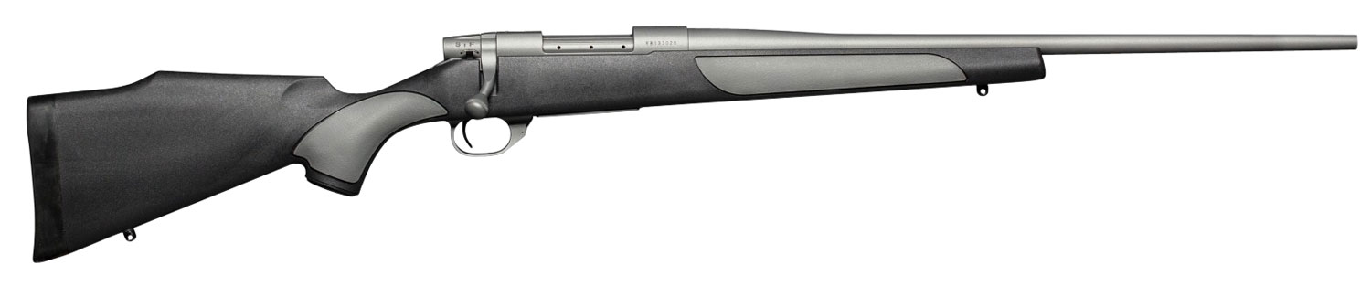 Weatherby's Vanguard rifles are guaranteed to shoot a 3-shot group of .99 or less at 100 yards (SUB-MOA) from a cold barrel when used with Weatherby factory or premium ammunition. Vanguard rifles are equipped with a match quality two-stage trigger (adjustable down to 2.5 lbs.) and a 3-position safety with the middle position allowing the shooter to work the action while safety is still engaged. The Vanguard action incorporates a one-piece machined bolt body fluted for reduction in weight and bearing surface area while eliminating binding for smooth action. Three gas ports allow high-pressure gases to escape laterally in the event of an accidental case rupture and the massive M-16-style extractor ensures reliable and positive extraction. Vanguard rifles have a one-piece machined receiver featuring an integral recoil lug for the utmost in strength and structural integrity along with a one-piece trigger guard with a hinged floorplate for easy access to unfired cartridges in the magazine. The Vanguard Weatherguard offers Cerakote protection. Its composite Monte Carlo Griptonite stock features pistol grip and forend inserts and a right side palm swell to aid in control and shooter comfort. The chrome-moly metalwork has a Cerakote Tactical Gray finish for exceptional weather and corrosion-resistance including the cold hammer-forged barrel with a #2 contour.