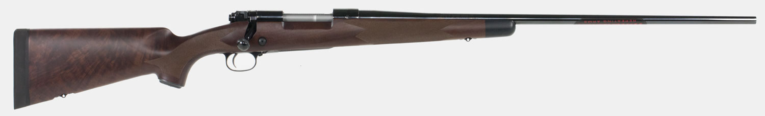 Its highly polished deeply-blued steel and finely checkered fancy grain walnut stock with shadowline cheekpiece define the timeless grace and elegance of the Model 70 Super Grade. It is beautifully functional placing your eye in perfect alignment with the scope. A one-piece steel bottom metal adds extra rigidity to the Super Grade's stock and action for improved accuracy and inletted sling swivel studs allow you to attach your favorite sling. The forged steel receiver with integral recoil lug is bedded front and rear to eliminate shifts in zero for exceptional long range accuracy. A Pre-64 Style controlled round feed with claw extractor fully controls the cartridge from magazine to chamber to ejection. The decorative steel crossbolt adds strength rigidity and a touch of stylish refinement. Inside is the M.O.A Trigger System with zero take up zero creep and zero overtravel for outstanding accuracy. The Model 70 Super Grade has a Pachmayr Decelerator Recoil Pad for optimal protection against felt recoil.