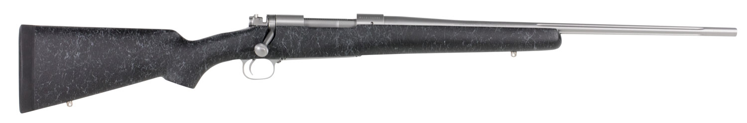 The Model 70 Extreme Weather Stainless utilizes a Bell and Carlson lay-up composite stock that provides a solid feel and features trim and lightweight ergonomics. It has a textured charcoal gray matte finish for rugged good looks and improved grip in adverse conditions. The sculpted cheekpiece helps insure proper eye-to-scope alignment from any shooting position. The thick black Pachmayr Decelerator pad helps take the felt recoil bite out of high performance magnum cartridges. Like all Model 70s today it features the Pre'-64 type claw extractor with Controlled Round Feeding so the cartridge may be easily withdrawn from the chamber at any point after it leaves the magazine. The Extreme Weather SS rifle's free-floating fluted stainless steel barrel is made in the same factory as those found on U.S. military rifles and machine guns and features a recessed target crown to protect the rifling.